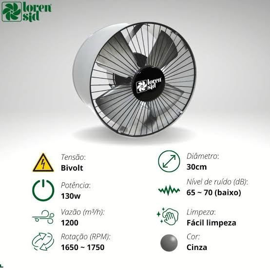 EXAUSTOR 30 CM 130W VAZAO AR 1200 M3H CINZA RV LORENSID 220V