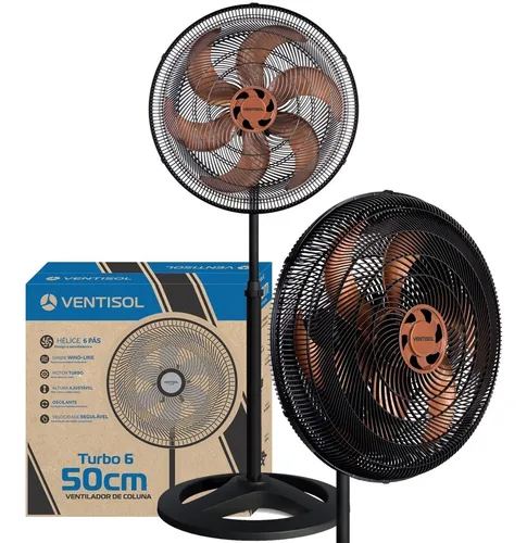VENT. VENTISOL 50 COLUNA 6P PRETO 135W GR PLAST. HEL. BRONZE 220V